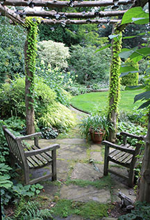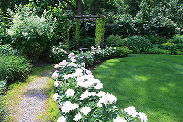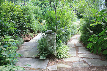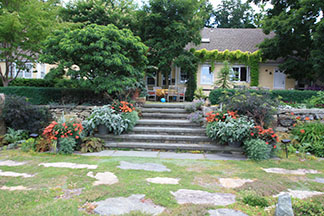 The gardens at Brigham Hill Farm are entered either through the granite slab driveway or down the bluestone walk. Many of the gardens were designed by Warren Leach working closely with the owners over the past twenty years. |