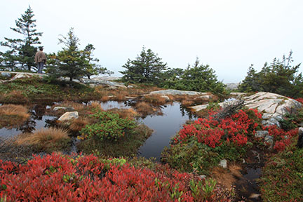 After a busy and hot summer at Tranquil Lake Nursery, we finally traveled to Maine and Mt. Desert Island in October. Our first destination was to a garden, The Asticou Azalea Garden in Northeast Harbor, laid out as a Japanese Stroll Garden. Both Debi and I have deep spiritual connections to this garden. The fall coloration of Fothergilla major and Enkianthus campanulatus was vibrant, even in an overcast mist. The falling leaves of the katsura tree (Cercidiphyllum japonica) perfumed the air with the sweet scent of caramelized sugar. The garden is remarkable not only for creating captivating sequences of beauty but for it’s very being. It is a ‘garden phoenix’, like the mythical bird rising from the ashes of its predecessor, Asticou arose from the dismantling of Beatrix Farrand’s Reef Point Estate.