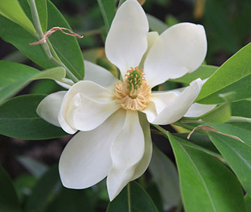 The Sweet Bay Magnolia (Magnolia virginiana) enamored early Seventeenth Century British plant enthusiasts. It has an extensive native range from the town of Magnolia, Massachusetts on Cape Ann south to Florida. Its glossy white, sweetly scented flowers bloom in June. I am especially fond of the hardy evergreen forms of Magnolia virginiana var. australis. The evergreen cultivar 'Henry Hicks', selected by the Scott Arboretum, is outstanding year-round. The Arnold Arboretum's collection includes several other evergreen form such as 'Milton'.