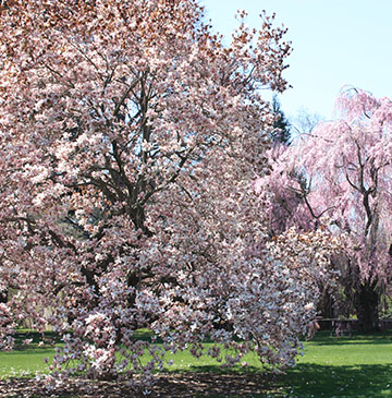 Boston boasts spectacular displays of Magnolias, from The Arnold Arboretum of Harvard University in Jamaica Plain to Commonwealth Avenue. Fifty three years ago, in 1963, civic activist Laura Dwight launched a community-wide drive to beautify the Back Bay. She recruited a group of volunteers, who planted the first saucer magnolias (Magnolia soulangeana) and Star Magnolias (Magnolia stellata) along Commonwealth Avenue. In 1995, The Garden Club of the Back Bay oversaw a second planting of more than forty Magnolia x ‘Leonard Messel’ -- adding to the spectacular spring display.