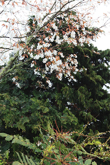 Golden Winter Hazel (Corylopsis spicata ‘Aurea’) produces clusters of drooping Amelanchier canadensis, Shad tree, blooms in late May to Early June. |
