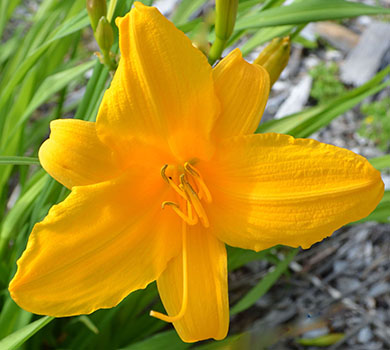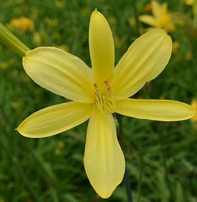 There are 29 daylilies blooming in the fields at Tranquil Lake Nursery today, June 17, 2020. The daylily season seems to be similar to last year. Some of the extra early (ExE.) blooming daylilies have now finished, while other are still making a showing and the early daylilies (E.) have joined them. We anticipate peak bloom around the middle of July, and then daylilies bloom will continue until frost. Most early booming daylilies are in the yellow and orange hues. Here are just a few of the daylilies on this week's list of blooming daylilies.