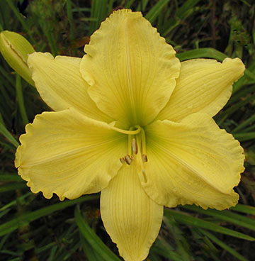 | Busting Out All Over (3", ExE. to L, 27" reblooms 3x, $15) | Lemon Prelude (21" ExE., 5", 18", Ex.E., Fragrant $12) |