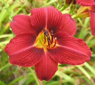 Today there were 35 daylilies blooming in the fields, ten more varieties than last week. Many of the earliest daylilies have finished their season. Most of the daylilies blooming today are still are orange and yellow, but this week there are more reds and pinks blossoms.
