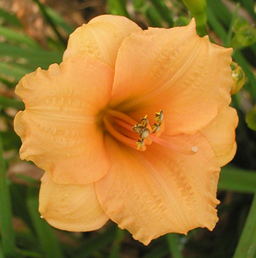 | Red Cossack (31", D., M., 5 3/4", $15) | Ruffled Apricot (28", D., E.M., 7", $10) |