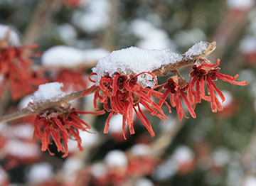 Hamamelis x intermedia 'Jelena' in snow at Longwood Gardens |
