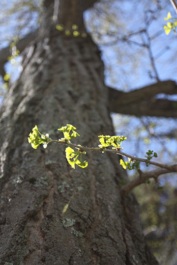 Maidenhair Tree (Ginkgo biloba) leaves emerging in spring |