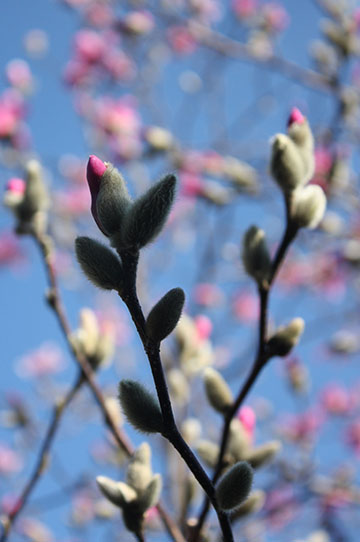 Magnolia x 'Leonard Messell' buds break in April |