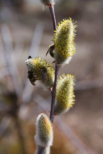 Black Willow (Salix nigricans) in bloom with March honeybees |